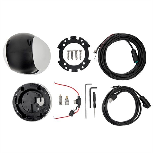 À la base, la caméra est équipée d'un filetage femelle standard de 1/4 pouce, permettant de fixer la Nightwave sur de nombreux trépieds et pinces. La caméra peut également être montée à l'envers, le logiciel faisant automatiquement pivoter l'image affichée de 180 degrés. L'alimentation se fait via USB ou via le câble vidéo-OUT fourni (12Vdc) que vous branchez dans le MFD. L'angle de vue de la Nightwave se règle manuellement en hauteur.