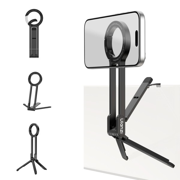 Trépied magnétique compact avec compatibilité MagSafe, design pliable et mousqueton pratique