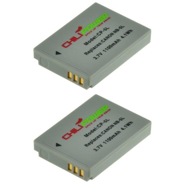 Donnez du punch à votre appareil photo avec ces batteries ChiliPower NB-5L ! Pack de 2 batteries de 1100mAh chacune avec capuchons de protection inclus.