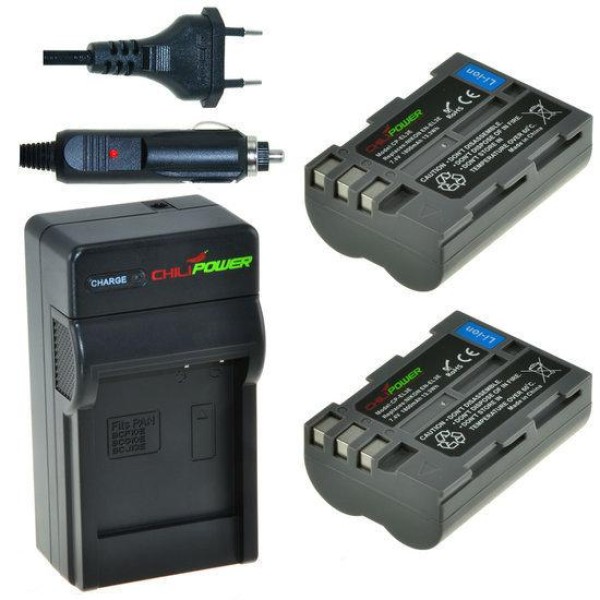 Pack avantageux : 2 batteries EN-EL3e (1800mAh) avec chargeur compact externe et chargeur auto inclus