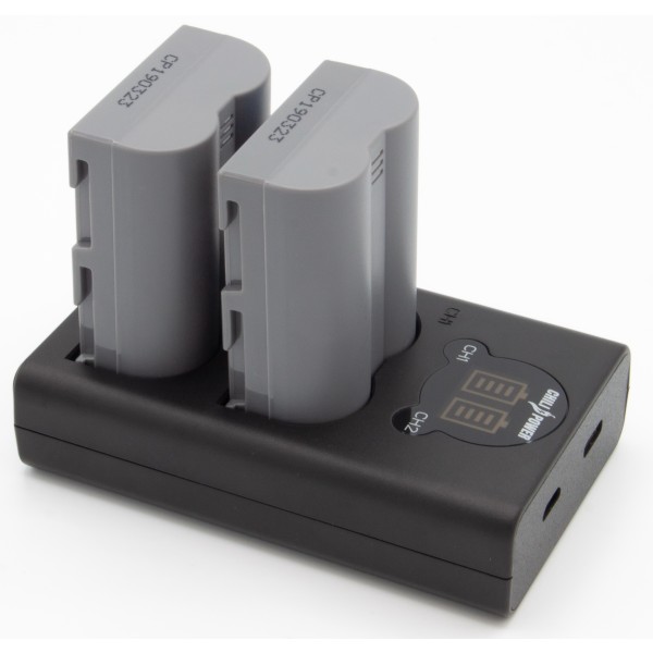 Set avantageux avec 2 batteries ChiliPower EN-EL3e Nikon (1800mAh) et chargeur USB double compact.