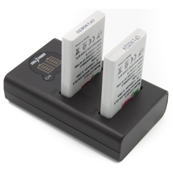 Set avantageux avec 2 batteries ChiliPower EN-EL5 (1150mAh) et chargeur double USB compact