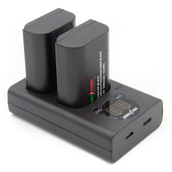 Kit avantageux avec 2 batteries ChiliPower DMW-BLK22 (2250mAh) et chargeur double USB compact