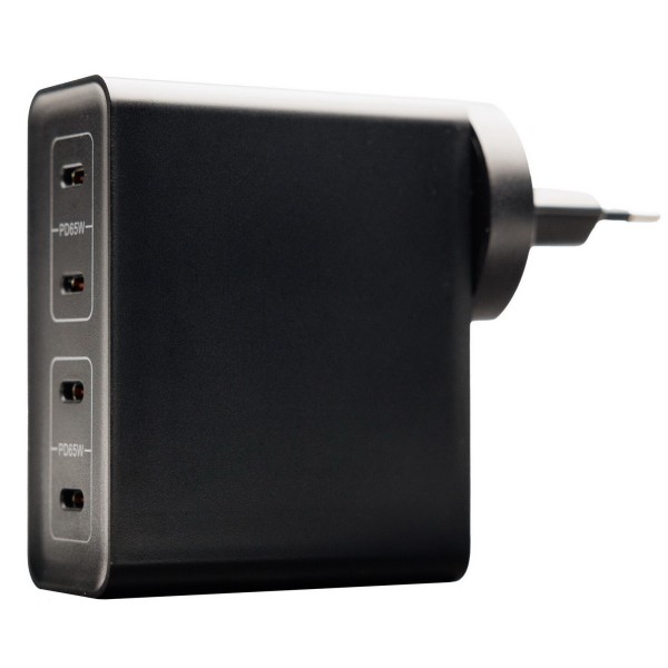 Chargeur USB-C professionnel 4 ports. Charge 2 appareils simultanément en ultra-rapide (2 x 65W) ! Supporte la charge rapide PD.