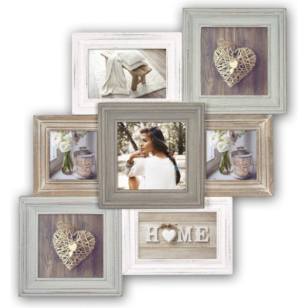 Haes Deco cadre photo collage en bois Honfleur avec support pour format photo 10x10 et 3x 10x15