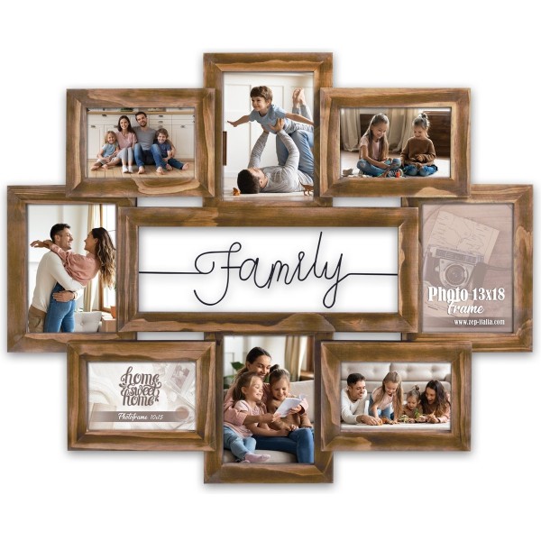 Cadre photo multi-vues élégant en brun avec aspect bois chaleureux pour 4 photos aux formats 10x15 et 13x18 cm