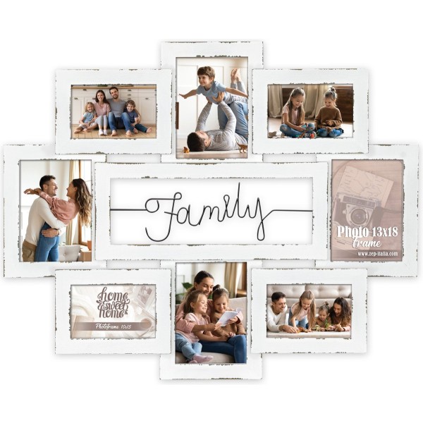 Cadre photo blanc élégant de Zep Italia avec style bois naturel, idéal pour exposer 8 photos