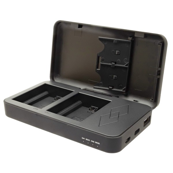 Vous recherchez un chargeur double compact et pratique pour vos batteries d'appareil photo ? Avec quelques fonctions supplémentaires par rapport à un chargeur ordinaire ? Alors ce produit est fait pour vous !