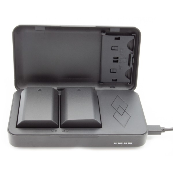 Vous recherchez un chargeur double compact et pratique pour vos batteries d'appareil photo ? Avec quelques fonctions supplémentaires par rapport à un chargeur ordinaire ? Alors ce produit est fait pour vous !