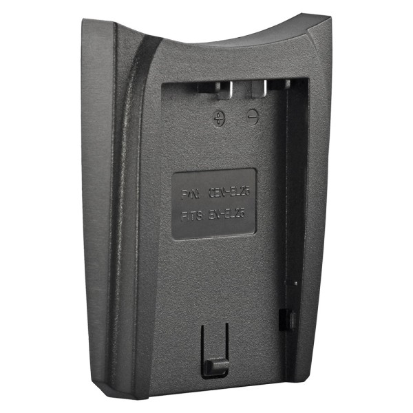 Cet adaptateur de façade se monte facilement sur les chargeurs Jupio duo et simple, transformant votre chargeur en une solution de recharge parfaitement adaptée à vos batteries Nikon EN-EL25.