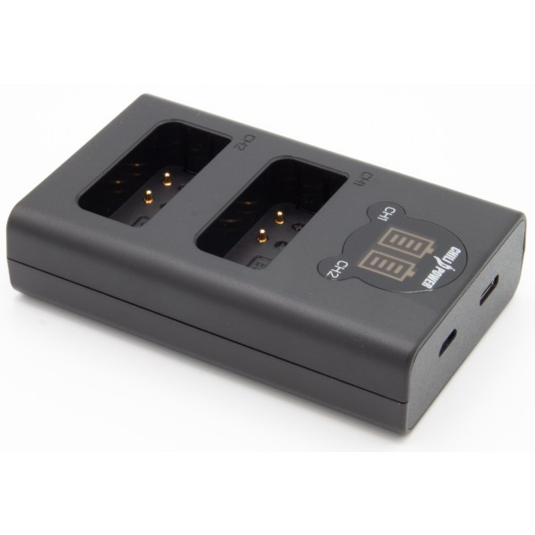 Chargeur ultra-compact et léger pour 1 ou 2 batteries BLN-1. Compatible powerbank, voiture, USB et secteur.