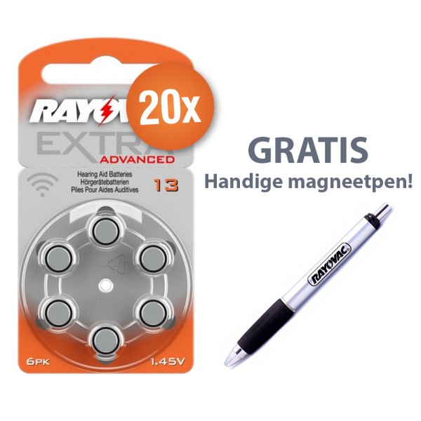 Pack économique de 20 blisters de 6 piles Rayovac type 13 (orange) avec stylo magnétique gratuit