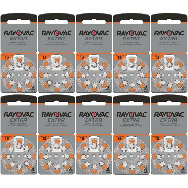 Rayovac piles pour appareils auditifs type 13 orange - lot de 60 piles (10x6)