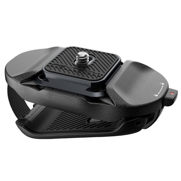 Le Beetle Camera Clip V2 est conçu avec votre sécurité à l'esprit. Le double verrou anti-glissement avec sécurité coulissante garantit que votre équipement reste fermement en place, sans risque de détachement accidentel. Le réglage de fixation à quatre points assure un montage solide et fiable sur votre système de portage.